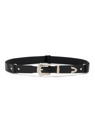 Crafted with meticulous attention to detail, this TOGA VIRILIS belt is an essential accessory for the fashion-forward individual. The sleek black leather strap is punctuated by silver-tone hardware, featuring intricately carved buckles and tips that showcase the brand's signature artistic flair. Ideal for adding a touch of sophistication to both casual and formal attire, this belt not only secures your style but also elevates it with its unique and eye-catching design.