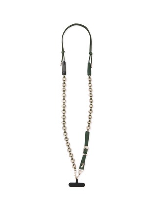 Elevate your tech accessories with the TOGA VIRILIS Ring Metal Phone Strap. This functional yet stylish piece features a durable metal chain-link section paired with a sleek forest green leather strap, accented with distinctive silver-tone hardware. The intricate carvings on the leather add a touch of TOGA VIRILIS's signature artistic flair, turning an everyday item into a fashionable statement. Perfect for securing your phone with added elegance, this strap blends practicality with the unique aesthetic characteristic of TOGA VIRILIS designs.