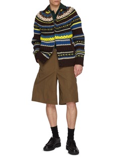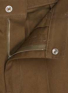 Embrace a blend of utility and style with TOGA VIRILIS's tailored khaki shorts. These shorts are designed to offer a sophisticated silhouette with their precise knee-length cut and structured design. Crafted from a durable, high-quality fabric, they feature a classic four-pocket configuration and a sleek, flat-front style that enhances their overall sharp appearance. The versatile khaki colour makes these shorts an excellent choice for a variety of occasions, easily paired with a casual tee or a more formal shirt for a polished look.