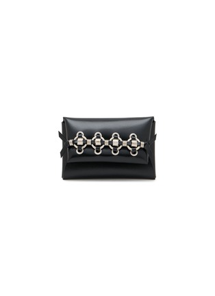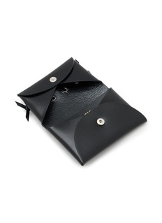 This TOGA VIRILIS card case is a sleek, stylish essential for the modern professional. Crafted from smooth black leather, it features a unique silver-tone bar embellishment that adds a distinctive, artistic touch. The compact design ensures it fits comfortably in a pocket or bag, while the secure closure keeps cards neatly organized and accessible.