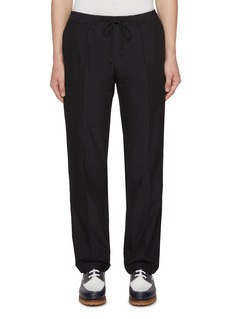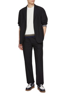 Cut from lightweight cotton nylon chambray, these trousers by Tomorrowland marry tailored ease with laid-back sensibility. The drawstring front adds utilitarian charm to a clean silhouette—ideal for styling with relaxed tailoring or minimalist sneakers.
