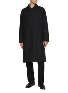 Crafted from Tomorrowland’s smart-merino wool blend, this single-breasted coat is designed with a clean shirt collar and concealed placket for an elegant, uninterrupted line. Rendered in a deep charcoal tone, it brings a grounded refinement to winter dressing—pair effortlessly with tailoring or elevated casual layers.