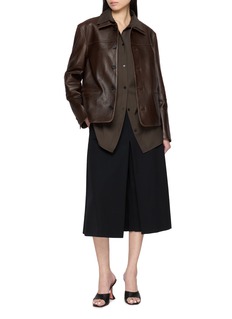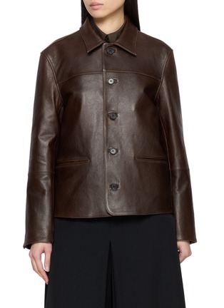 Tonywack 以复古质感诠释都市通勤风格,这款夹克用植鞣小羊皮衬出细腻肌理,工装版型添利落细节,宽松廓形适配多场景。搭配同色系衬衫与黑色裙裤,可演绎随性又高级的全棕造型。