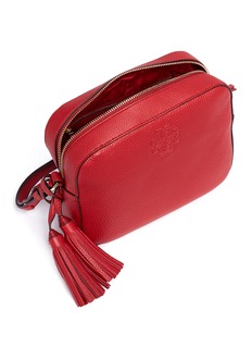 Thea系列是Tory Burch最受欢迎的款式之一,简洁的廓形实用度极高,新季此款选用大气的红色荔枝纹皮制作,正面附有标志性的品牌绗缝图案,肩带处的流苏装饰为可拆式设计,令造型更具变化,内部间格合理,是日常混搭的首选。