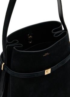 瑞典品牌 TOTEME 以斯堪的纳维亚式美学理念,成就别具一格的北欧风格。这款手提包以绒面皮革带来复古奢华格调,纤细皮带设计勾勒精致笔触。