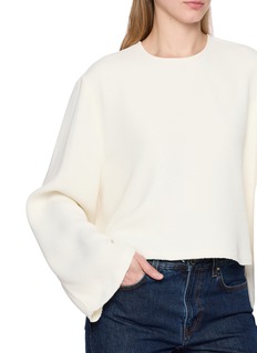 TOTEME 以斯堪的纳维亚美学为核,打造简约北欧风格。这款上衣以喇叭袖舒展线条,短款剪裁利落显比例,圆领贴合舒适,搭配牛仔蓝裤装,尽显北欧清冷松弛感。