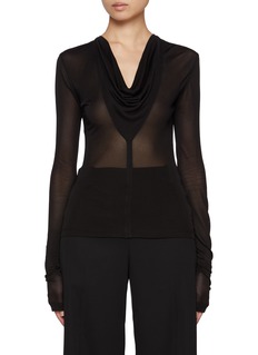 瑞典品牌 TOTEME 以斯堪的纳维亚式美学理念,成就别具一格的北欧风格。这款上衣垂褶 V 领优雅垂坠,搭配半透视面料,合力带出精致感。