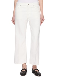 微喇剪裁与米白丹宁,构成这条牛仔裤的核心辨识度。TOTEME 选用挺括丹宁打造利落线条,九分廓形适配多元搭配,经典五袋设计作为标志性细节,是北欧风格融入日常穿搭的关键单品。