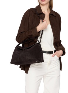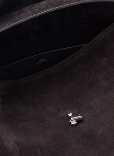 TOTEME 品牌植根于当代女性的生活状态,致力于打造出兼具实用性与时尚感的日常服饰。这款单肩包采用细腻绒面皮带来随性又不失精致的格调,T 字母的锁扣带来辨识度一笔。