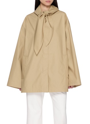 TOTEME 以极简解构重塑户外夹克,这件单品选用挺括面料,围巾式连帽领成为视觉焦点,宽松廓形释放松弛感,利落剪裁弱化夹克的硬朗感,搭配微喇牛仔裤,精准诠释北欧美学中的柔与刚。