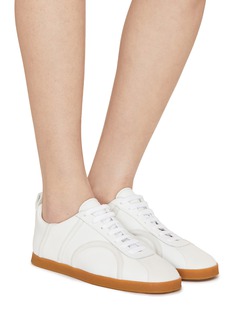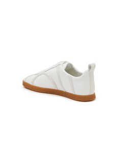 Totême 这款运动鞋以经典德训鞋的版型为基础,立体 logo 沿边极具层次感,面料拼接玩味十足,尽显时髦设计感。