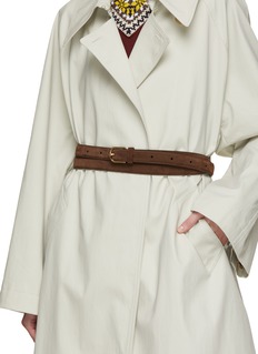 Totême 品牌植根于当代女性的生活状态,致力于打造出兼具实用性与时尚感的日常服饰。这款腰带精选富有质感的真皮制作,简约设计,可系于裤头或收束连衣裙,搭配你的摩登女郎造型。