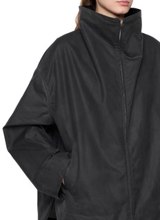 TOTEME 秉持北欧克制美学,以线条与质感塑造风格。此外套采用立领收束颈部线条,宽松版型消解束缚感,细节缝线利落干脆,尽显极简格调。