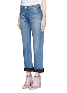 以加工牛仔裤起家的Tu es mon TRÉSOR,常予人时尚创新的惊喜,是前卫街造型的理想选择。这款Boyfriend款牛仔裤在裤腿口加入蝴蝶结缀饰围边,在夸张与精致中取得平衡,让您打造令人难忘的形象。