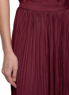 ULLA JOHNSON 擅用褶皱与色彩营造氛围,风格柔美而精致。此裙取酒红为底,百褶肌理藏着灵动巧思,长款版型释出优雅感,垂坠面料消解厚重,尽显浪漫气质。