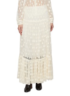 Ulla Johnson 讲求工艺精湛、细节精致,以神秘浪漫的吉普赛风格掳获时尚界的心。这款长裙选用轻盈透视的波点蕾丝面料,搭配高腰剪裁与自然垂坠的裙摆,于行走间流露飘逸气息。