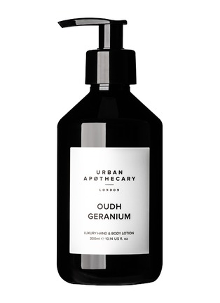 Fuelled by a passion for fragrance and a desire to create a unique blend in a contemporary way, Urban Apothecary presents this Oudh Geranaium hand and body lotion. Suffusing a woody-floral scents that laces smoky oudh and rosy geranium with golden amber and patchouli, this soothing formula promises a luxurious lather that leaves skin feeling silk soft and nourished.