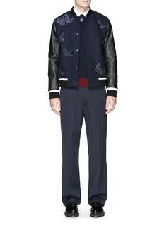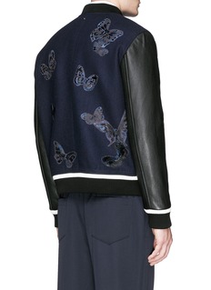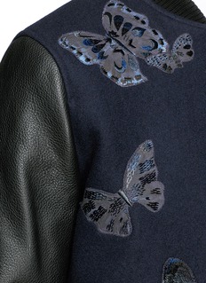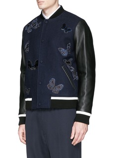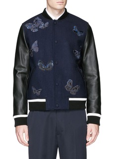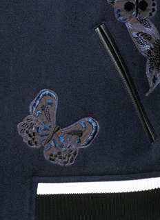 华伦天奴这款夹克以纯羊毛毛呢面料制成衣身,拼合牛皮衣袖,充满硬朗前卫气息。标志性的蝴蝶刺绣图案添加奢华精致感觉,将个性设计与华丽风格合二为一,让你轻松搭配出别具一格的休闲风造型。