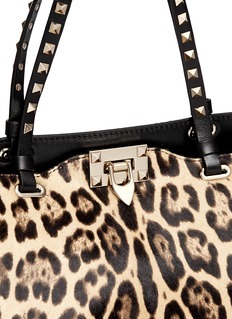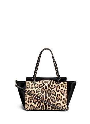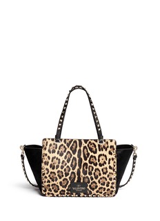 VALENTINO GARAVANI - ROCKSTUD小号豹纹小牛毛手提包