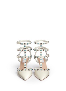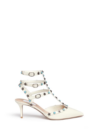 别具硬朗气息的罗马鞋近季大热,Valentino Garavani这款以三重搭带拼出鲜明的罗马鞋设计,并缀以星形铆钉及圆珠装饰,构成别开生面的设计,鞋头为光滑的漆面牛皮,结合流畅的尖头鞋型及细跟,让您展现大气优雅一面。