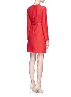 这款连衣裙以标志性的“华伦天奴红”示人,全然展现女生甜美一面,剪裁简约实穿,腰间加入裸色网眼拼接,并缀以蝴蝶结装饰,令腰部肌肤若隐若现,散发优雅奢华气息。