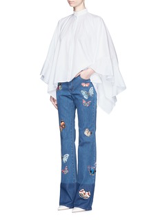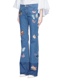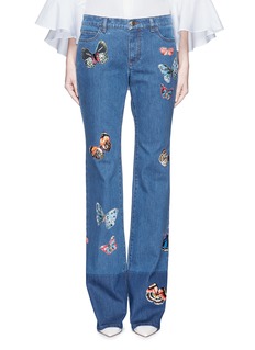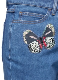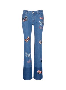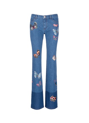生动精巧的蝴蝶刺绣是华伦天奴近季力作,这款牛仔裤亦以此为基础,设计师把蝴蝶不同的形态描绘得极为细致,搭配彩色主调,散发浪漫复古气息,结合直筒款式和拼色设计,透出一份热情活力。
