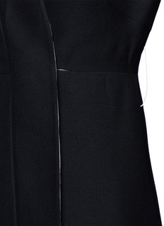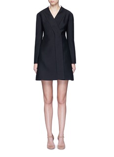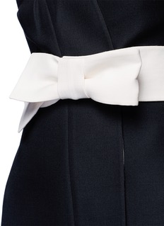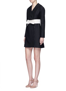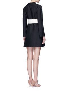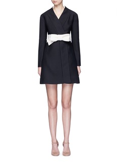 华伦天奴从典雅的日式和服中获取灵感,打造这款以叠搭式开襟为特色的连衣裙,腰部饰以象牙白蝴蝶结腰带,与黑色主调形成对比,同时收紧腰线,更显婀娜身姿。您只需搭配一双高跟鞋,便是一个摩登中又带有一分庄重的晚间造型。