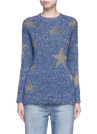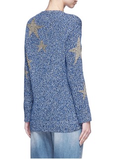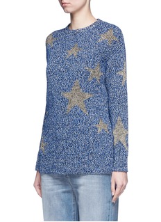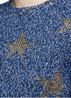 华伦天奴这款针织衫于蓝、白、黑混色针织面料中混入卢勒克斯金银丝,制作出精美夺目的金色五角星嵌花,打破极简的设计,散发复古又带有欢庆感的气息。棉混羊毛面料质感厚实又柔软,为秋冬带来温暖触感,您只需搭配一条牛仔裤,便可轻松夺人眼球。