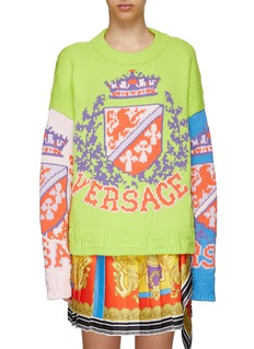 Versace(范思哲)以大胆的印花与鲜明的廓形呈现鲜活意式风格。Royal Rebellion 印花的设计灵感来自来自象征王室的王冠和徽章,品牌以大胆的色彩呈现华丽的图案设计。这款针织衫以 Royal Rebellion 带来宫廷复古格调,助你轻松打造时尚吸睛造型。