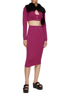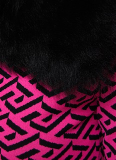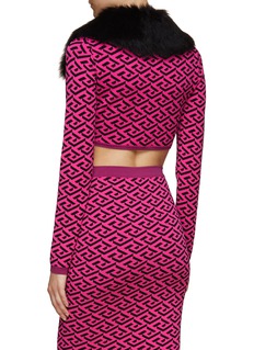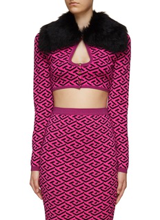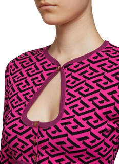 Versace(范思哲)以大胆的印花与鲜明的廓形呈现鲜活意式风格。这款针织开衫以提花图案的针织面料制作,短款廓形更显纤长身形。切割设计搭配美杜莎纽扣带来大胆变奏,助你轻松打造时尚吸睛造型。