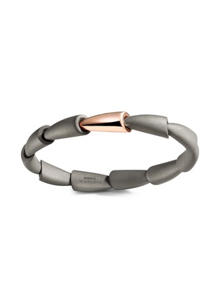 This Calla Collection bracelet by Vhernier merges sculptural elegance with organic inspiration, its 18K rose gold and titanium links evoking the graceful curves of a calla lily. A bold yet refined statement, it celebrates nature’s beauty through modern craftsmanship.