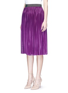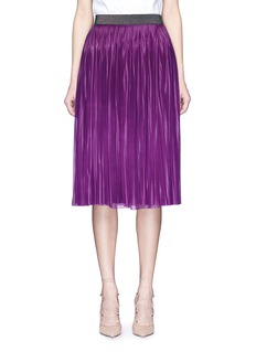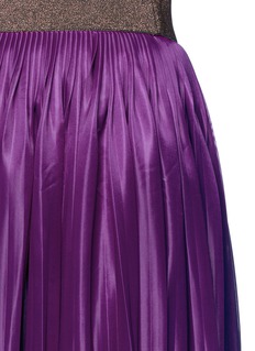 维多利亚贝克汉姆这款半身裙以顺滑轻盈的面料打造出飘逸质感,百褶设计更显灵动和层次魅力。紫色主调高贵优雅,金属感光泽裙腰增添摩登细节,是搭配白衬衫的绝佳单品。