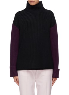 VICTORIA, VICTORIA BECKHAM这款羊毛针织衫质感柔软舒适、剪裁宽松随性,对比色调呈现出鲜明层次,瞬间点亮你的休闲造型。