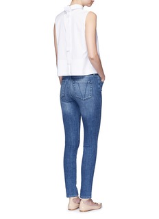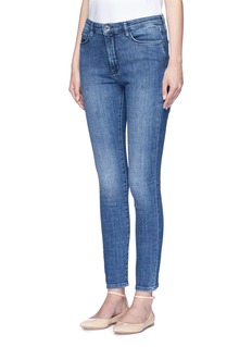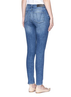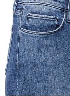VICTORIA, VICTORIA BECKHAM这款牛仔裤采用复古的高腰剪裁,加上流畅的修身线条,加倍修饰出纤长腿线,经典的蓝色中呈现淡淡的水洗色泽,搭配浅色上衣,打造富对比的简约造型便最为合适。