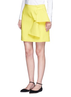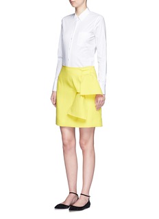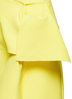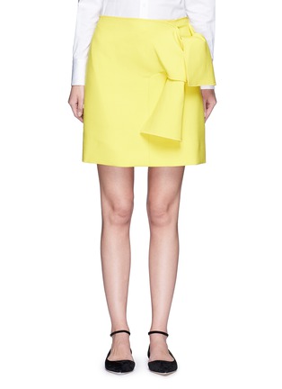 有别于VICTORIA, VICTORIA BECKHAM常用的冷色调,这款半身裙采用鲜艳夺目的黄色设计,将混羊毛面料裁出笔挺廓形,并饰以较大的结饰作点缀,简约地展示青春活力。