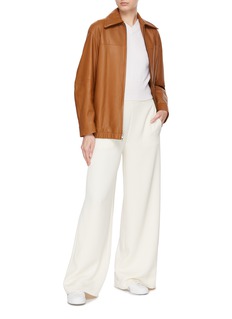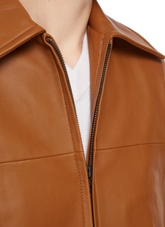 Vince 以利落线条、丰富面料和复杂细节处理,打造出随性奢华的衣橱基本着装系列。这款外套以细腻皮革打造简约版型,助力你的日常搭配。