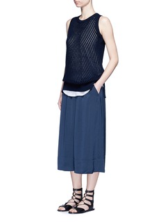舒适百搭的阔腿裤是近季最流行的裤款,文斯将其简约哲学融入其中,选用质感轻柔且带光泽感的缎面面料塑造飘逸感觉,八分长度让您露出部分小腿,可令身型比例更修长,搭配不同鞋履,展现多样的造型变化。