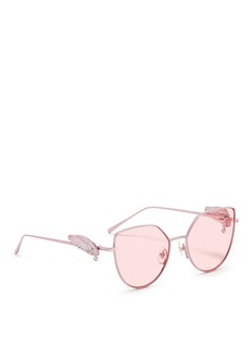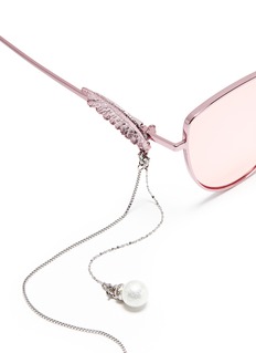 WANGDERLAND这款粉色太阳眼镜以翅膀装饰点缀镜框,结合摇曳的珍珠吊链,为你的造型注入几分华美梦幻气息。