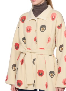 A collaboration between We Norwegians and Markarian, this jacket combines Nordic heritage with romantic artistry. Featuring bold pansy motifs, it’s designed in a relaxed silhouette with a belted waist. A statement piece that captures both warmth and whimsy.