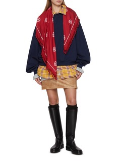 WE11DONE reimagines the classic sweatshirt with layered ingenuity. Crafted in cotton, this oversized silhouette features a check shirt hem insert and a detachable tasseled scarf draped across the neckline. Its hybrid design blurs casualwear with subcultural flair, making it ideal for statement street layering.