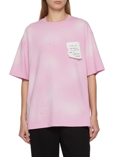 WE11DONE 来自韩国,以解构主义美学和街头文化为设计核心,将经典单品重新演绎。这款 T 恤采用独特纸条贴片设计,手写字迹营造个性表达,破洞细节增添街头叛逆气息。宽松版型适应多样身形,可搭配高腰牛仔裤和运动鞋,演绎随性街头风格。