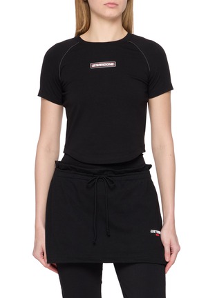 WE11DONE channels a sporty edge with streetwear flair with this skirt. Featuring a sleek black palette and minimalist silhouette, this piece is enhanced by its raglan sleeve and logo patch.