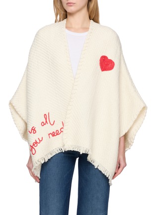 Soft sentiment meets everyday ease in this loose cardigan by WEHVE, knitted from a merino–Tencel blend with a tactile, comforting hand feel. Finished with heart embroidery and handwritten lettering, it drapes effortlessly over denim or layered tees, bringing warmth and quiet optimism to off-duty dressing.