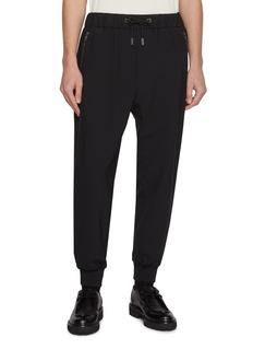 WOOYOUNGMI 以独具时尚感的韩国风格演绎新颖男装,凭借出色剪裁和高质布料配搭而闻名遐迩。这款长裤以垂顺面料打底,抽绳腰头点亮舒适感设计,侧边拉链细节又添极简精致感,束脚版型兼顾利落与随性。