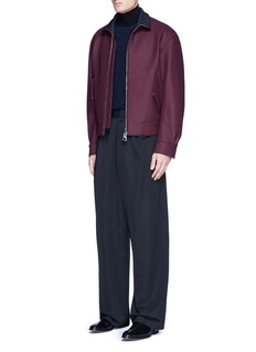 棒球夹克热潮延续至秋冬季,韩国人气品牌Wooyoungmi这款以优雅浪漫的酒红色拼深蓝色设计,厚实的混羊毛面料带来挺括廓形,让您的身型更显魁梧。配以高领款式,更添神秘酷感。