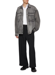 WOOYOUNGMI 这款衬衫由牛仔布裁就,版型宽松,衣身经水洗褪色处理,散发着自然复古韵味,打造出酷飒潇洒的造型。