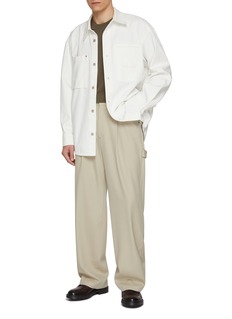 WOOYOUNGMI 以独具时尚感的韩国风格演绎新颖男装,凭借出色剪裁和高质布料配搭而闻名遐迩。这款长裤以挺括面料打底,双褶设计是品牌标志性的 “松弛剪裁” 语言,阔腿版型既保留西裤的利落感,是把 “舒适与格调” 揉进日常的质感单品。