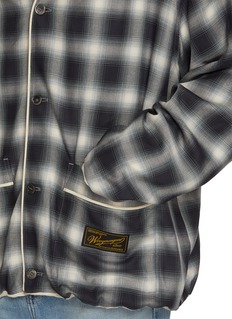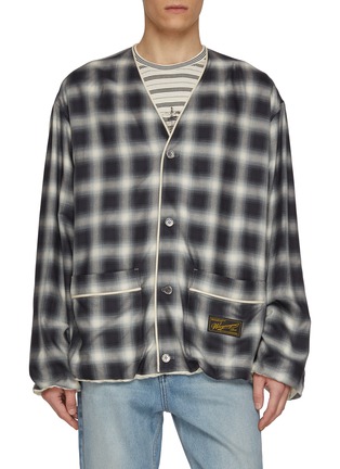WOOYOUNGMI 这款宽松开衫以大胆阴影格纹搭配对比色镶边,尽显精致锋芒。宽松廓形配以贴袋设计,低调品牌标识彰显内敛格调。