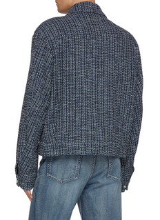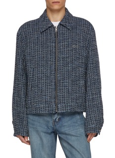 Each WOOYOUNGMI piece tells a story of understated rebellion, where clean lines and unexpected details create a language of quiet confidence. Shaded in a deep blue hue with a tweed construction, this jacket elevates your day-to-day styling with a tactile touch.