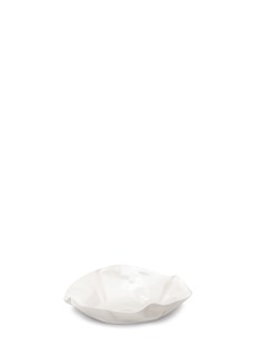 设计师谢东的创作融合了褶皱感、流线型及不规则的特点,她的设计灵感来源于一切看似无形的无重力物品,例如正在融化的冰、漂浮的云、阳光下扑朔迷离的影子等,试图再现生活中转瞬即逝的瞬间。这款餐碟表面采用皱感设计,摆放食物或搭配其他餐具使用都很合适。精致的工艺加上新颖的创意,令生活中的小物件也摇身一变成为艺术品,既具实用性,又能体现不凡生活品位。